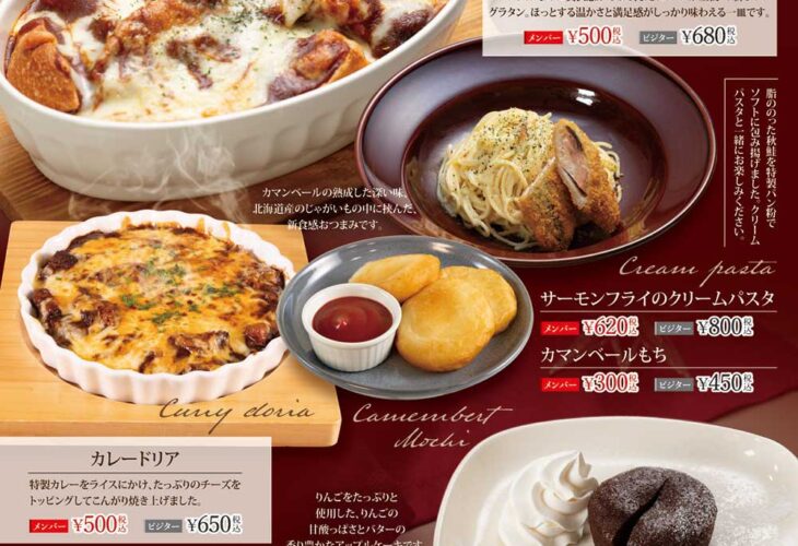 カレーパングラタンやサーモンフライのパスタや冬らしくカレードリアがラインアップ。…