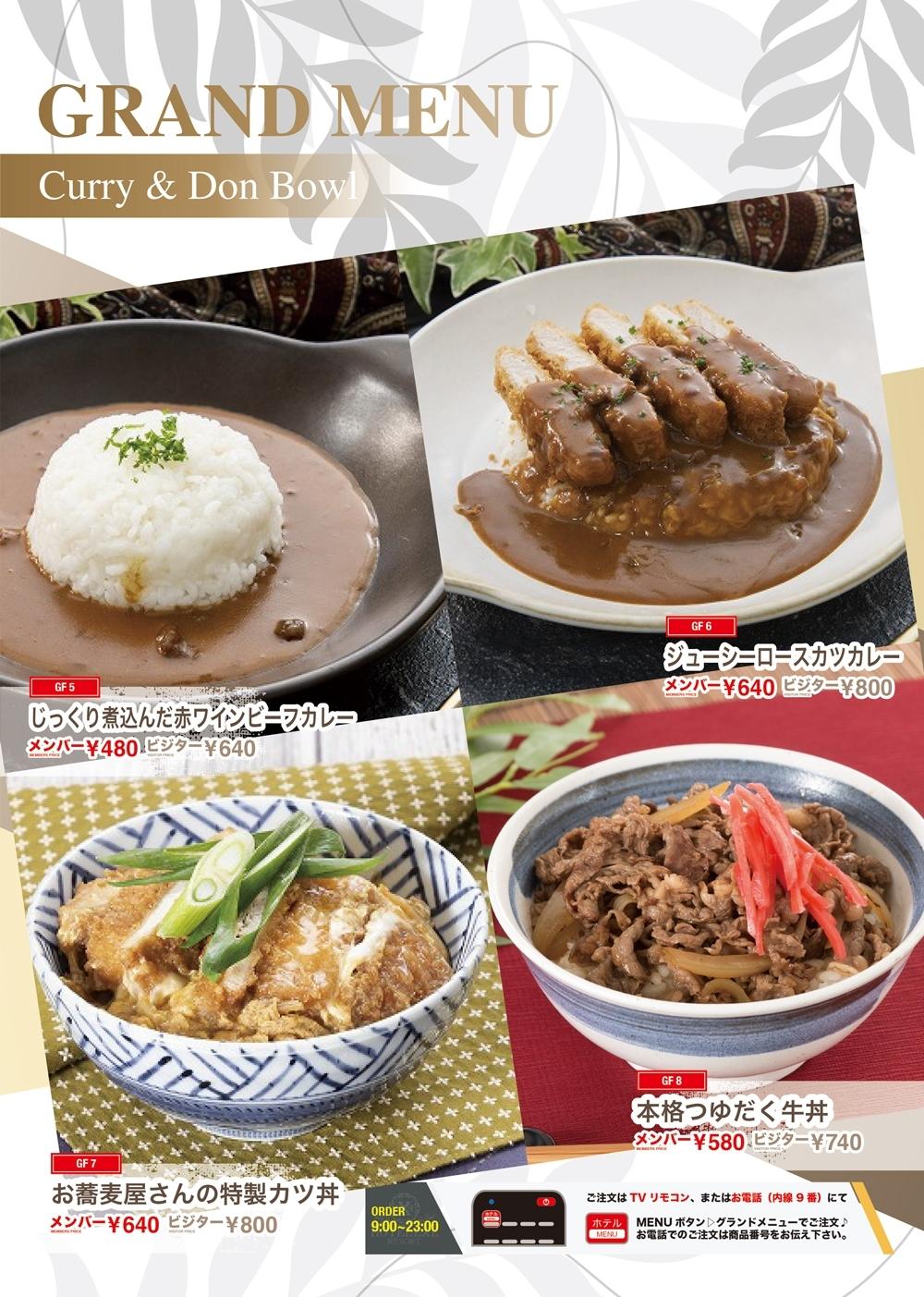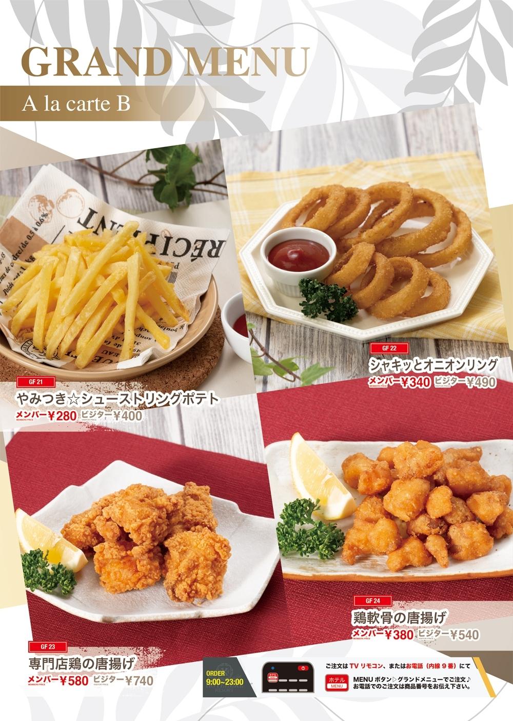 当ホテルには24時間オーダー可能なグランドメニューがございます。