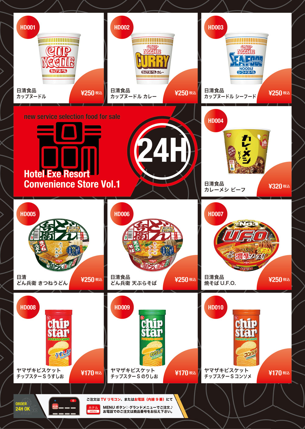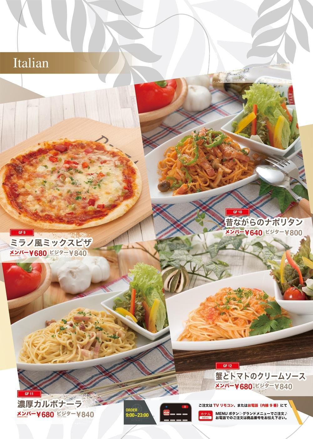 ご注文はフロント9番までご連絡下さい。